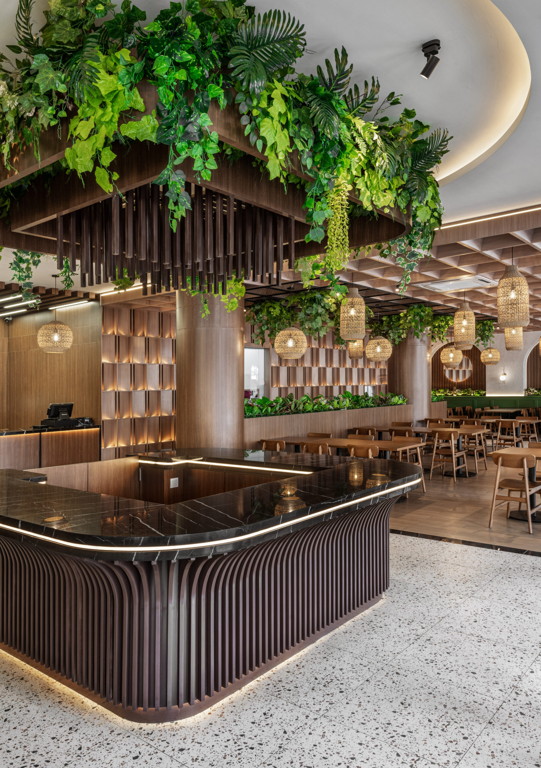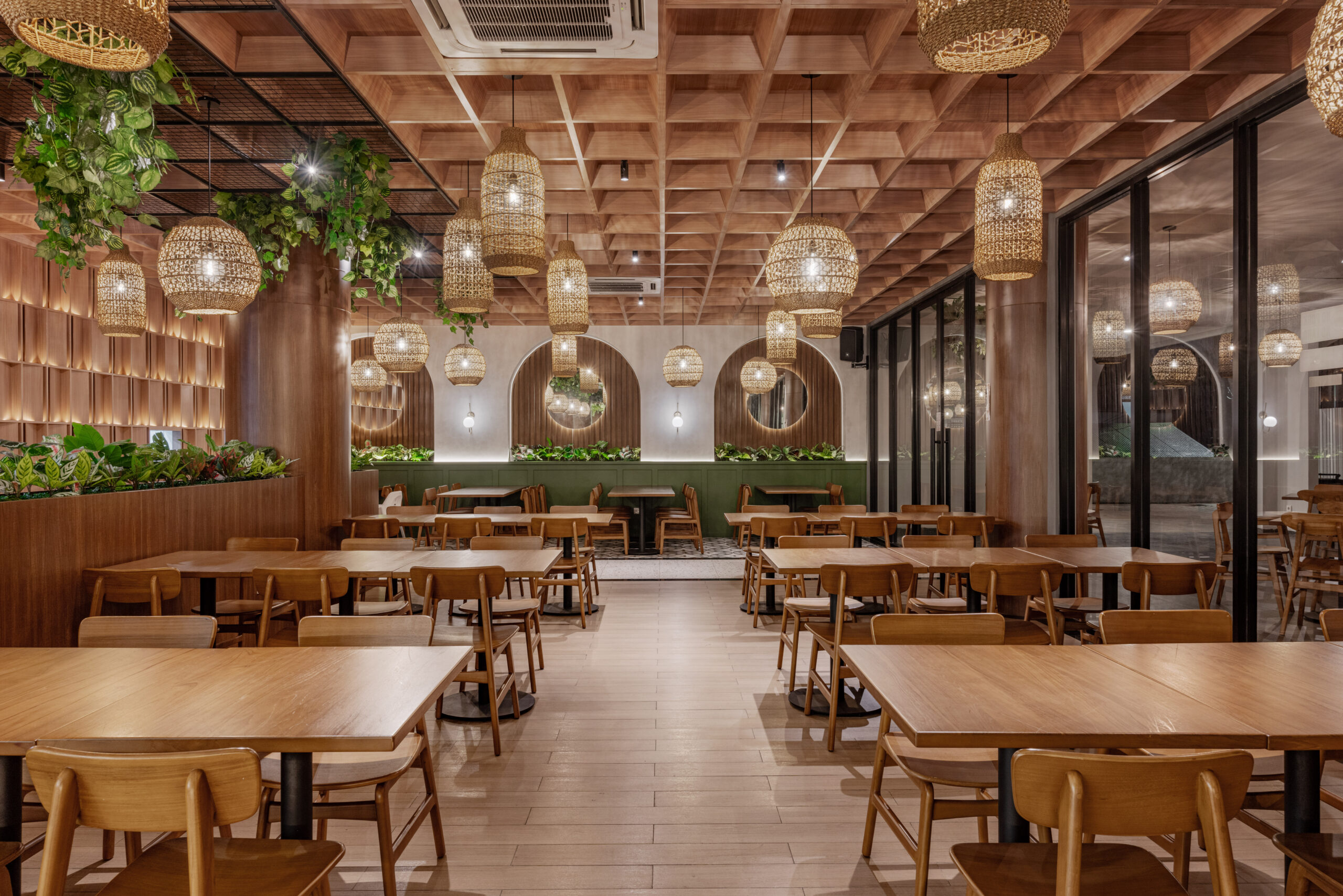 Signature ceiling garden & lighting menjadi ikon restoran yang meningkatkan daya tarik brand.